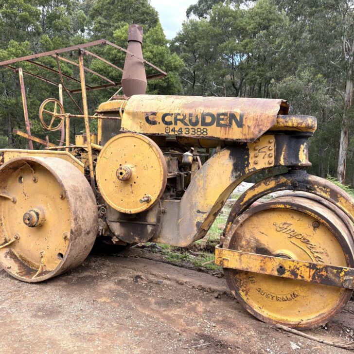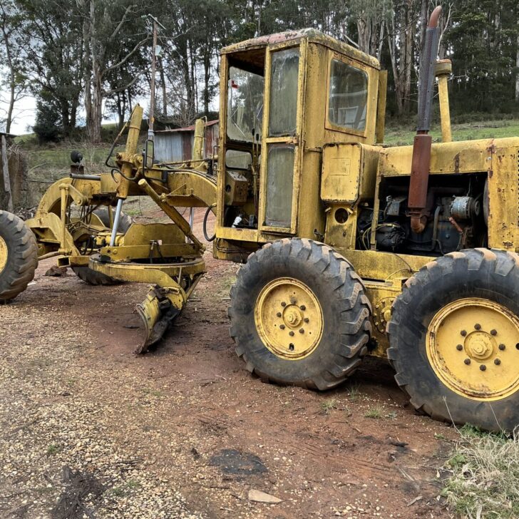 Vintage Road Roller & CAT Traxcavator: *1947 A.H McDonald flat roller, cartridge start,19tn#. *1957 CAT 25A 933 Traxcavator#. *1954 Galion Road grader, 401 Leyland engine, 120Hp, new fuel pump, 12ft blade, good tyres in good working condition.