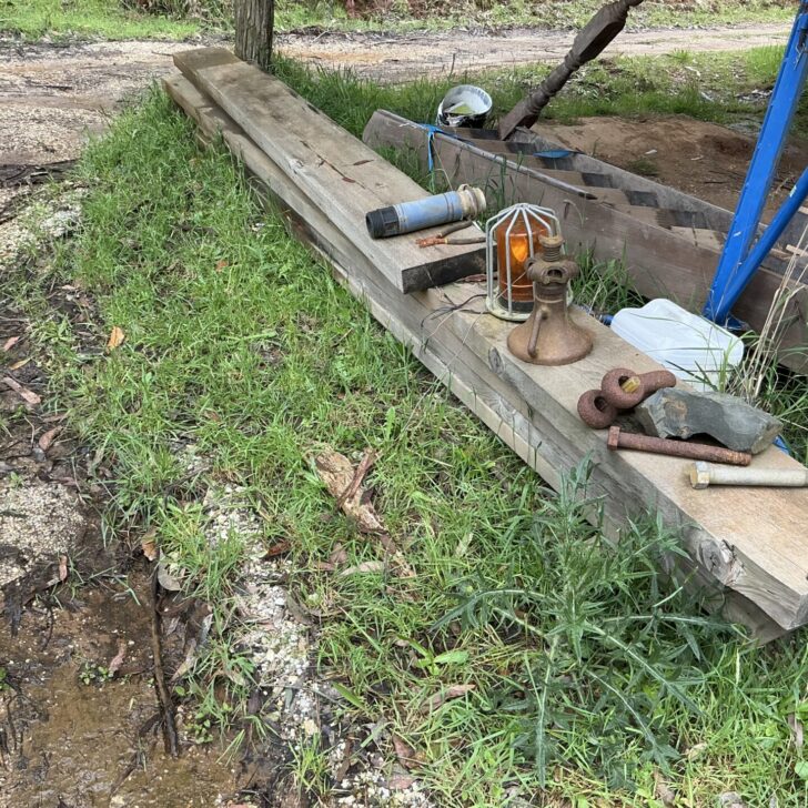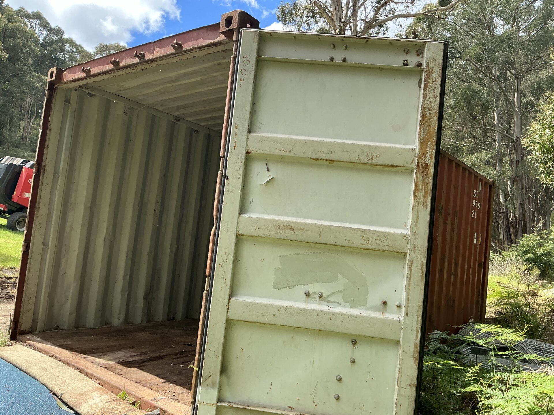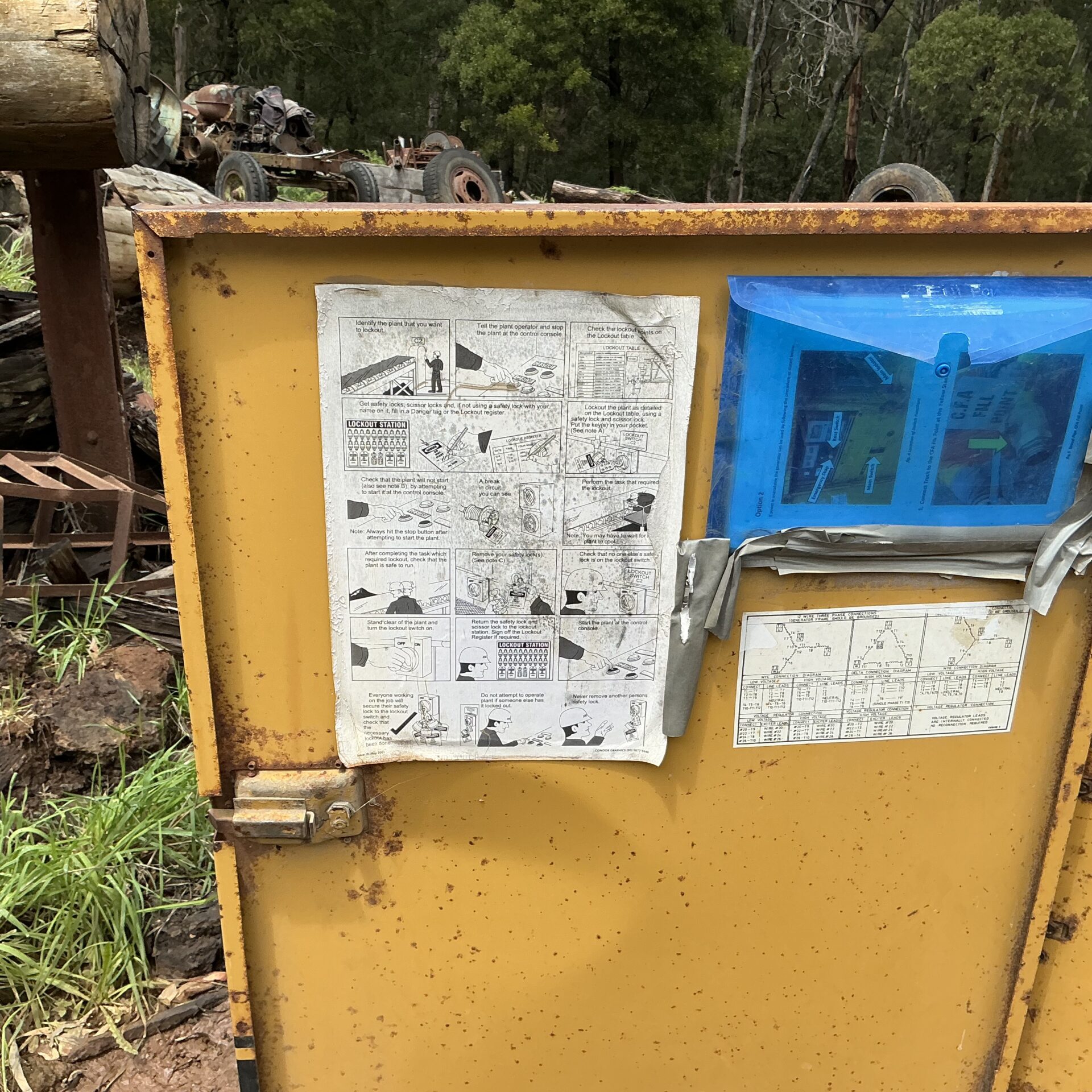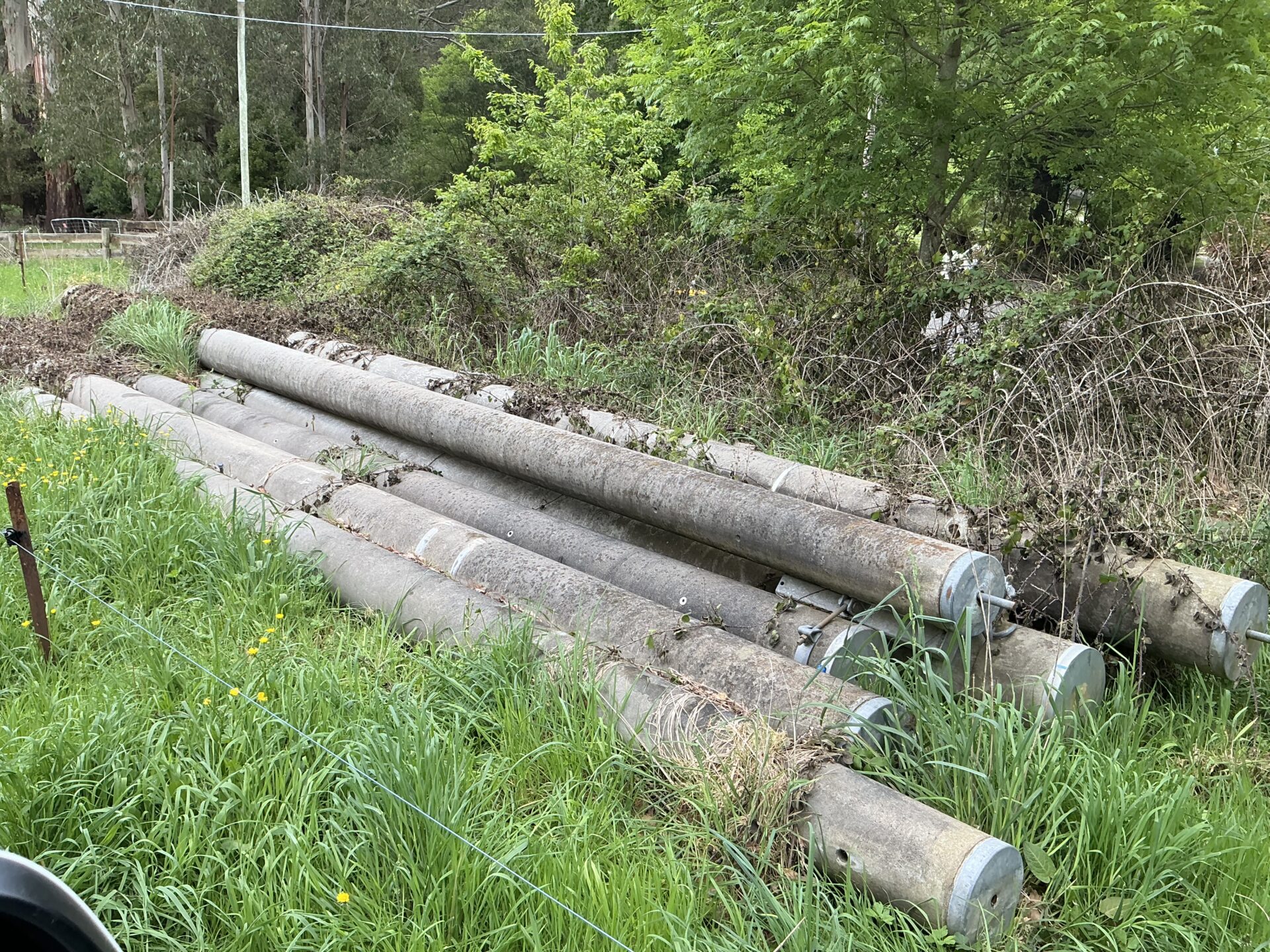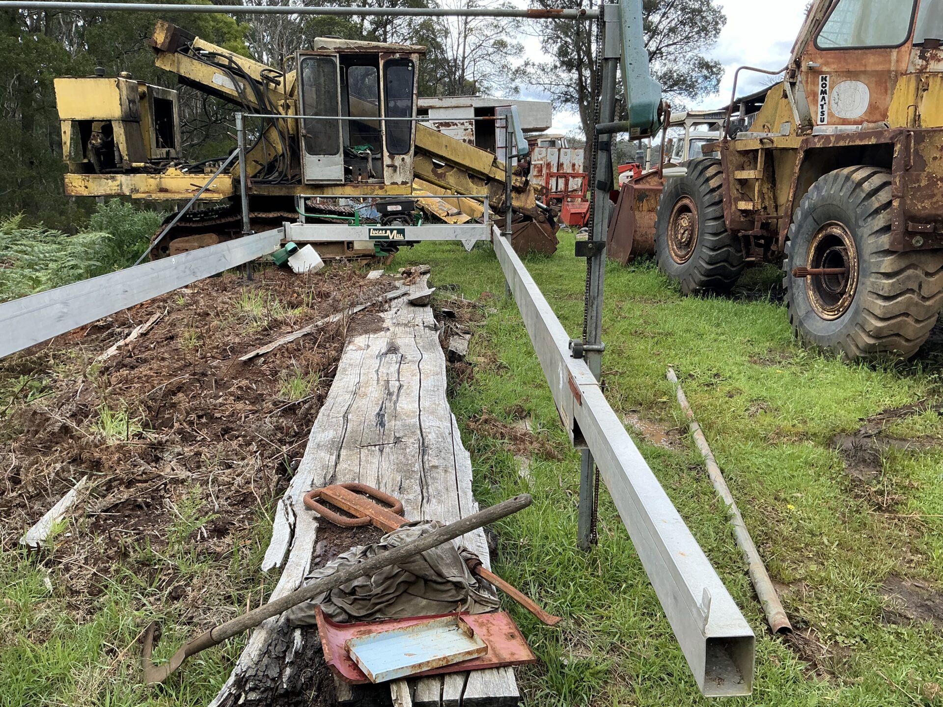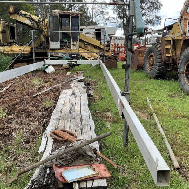 Sundry items: *Plastic sheet Gyprock lifter. *Oregon beams, 4x 4.8mx300x80. *1x 2.7mx300x80. * Qnty Red Gum natural tree aged. Qnty of new starter motors to suit early Holden & Fords. *Lucas Mill with petrol engine. *20ft shipping container. *4x 14.5m concrete power poles. *15x 13.5m concrete power poles. *2x 1.5tn demolition balls.