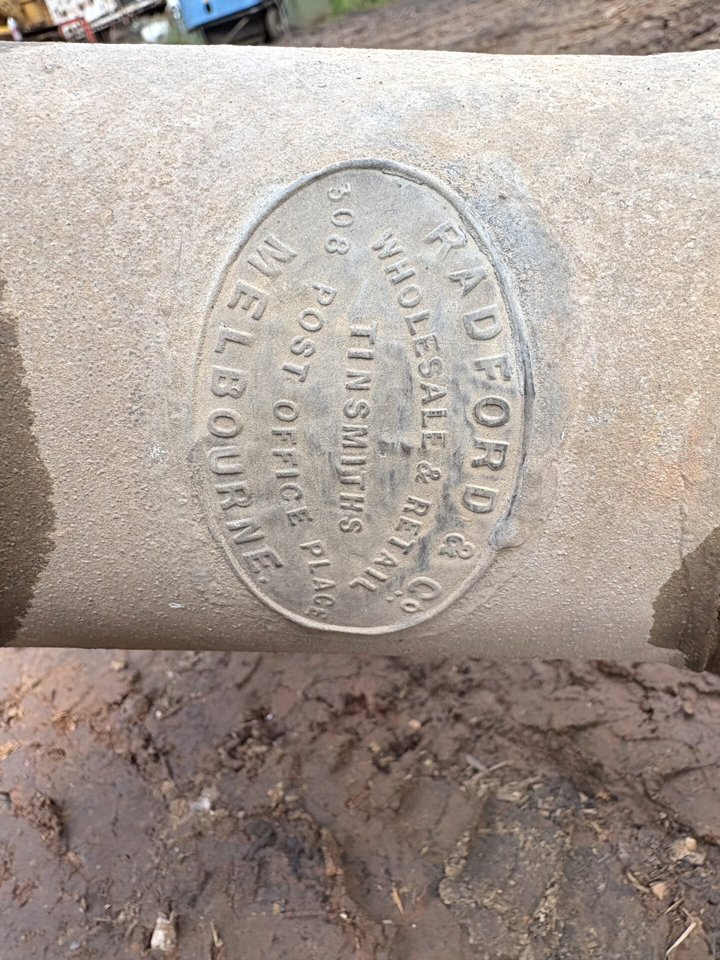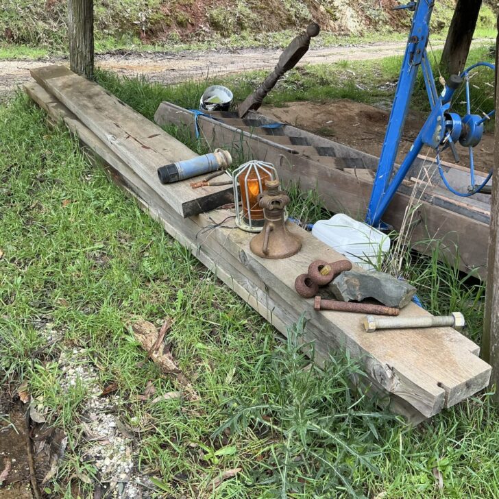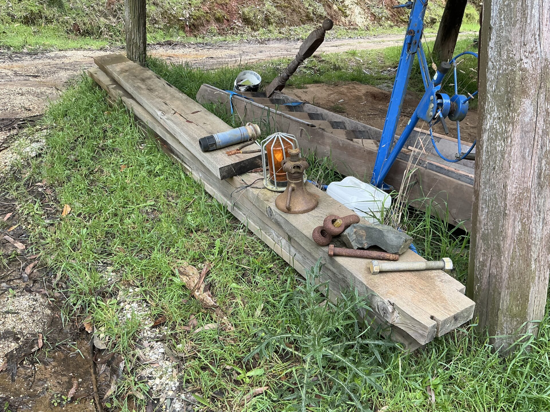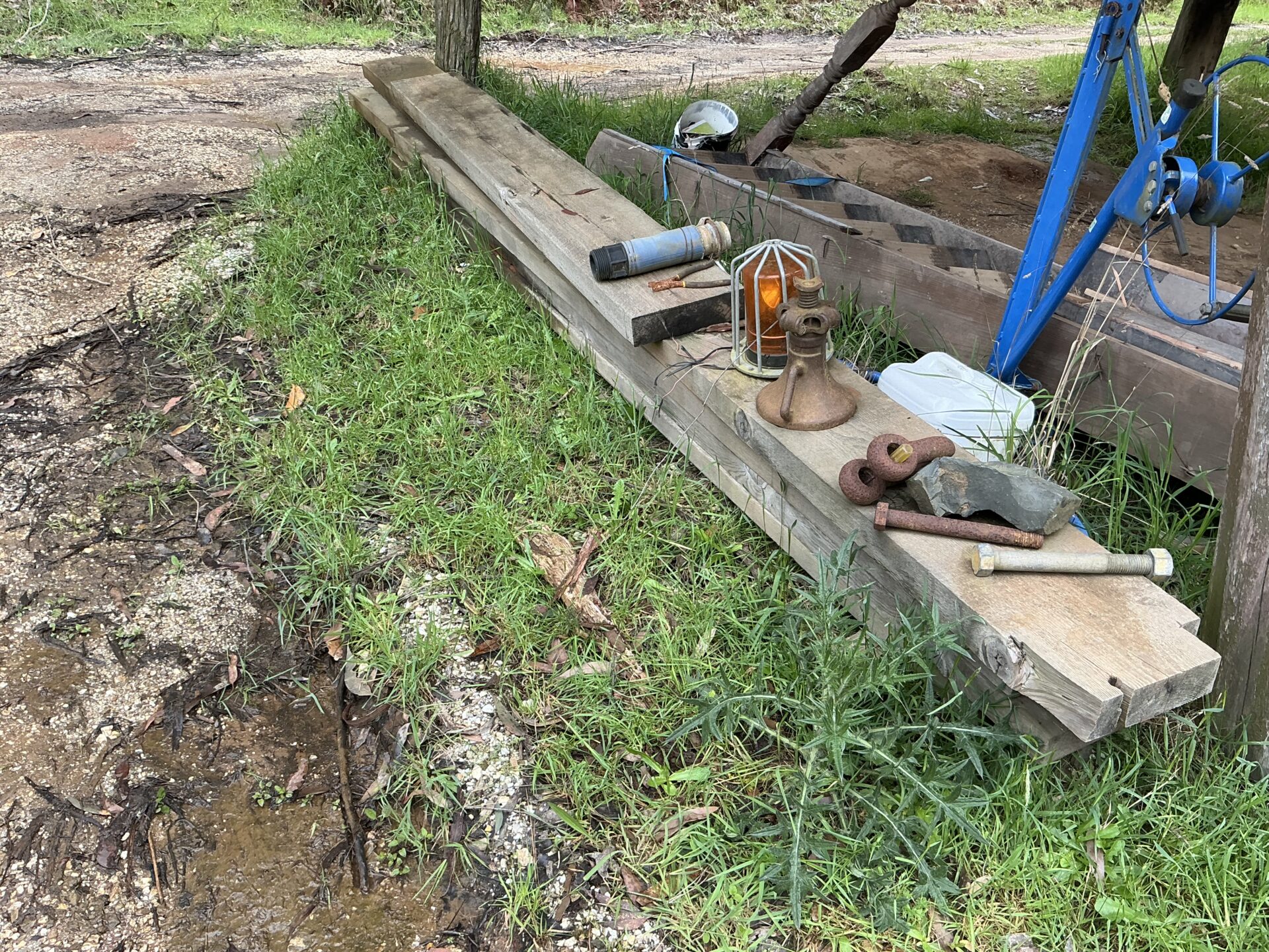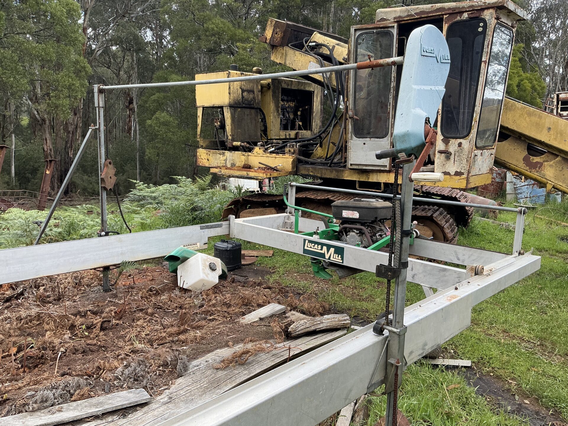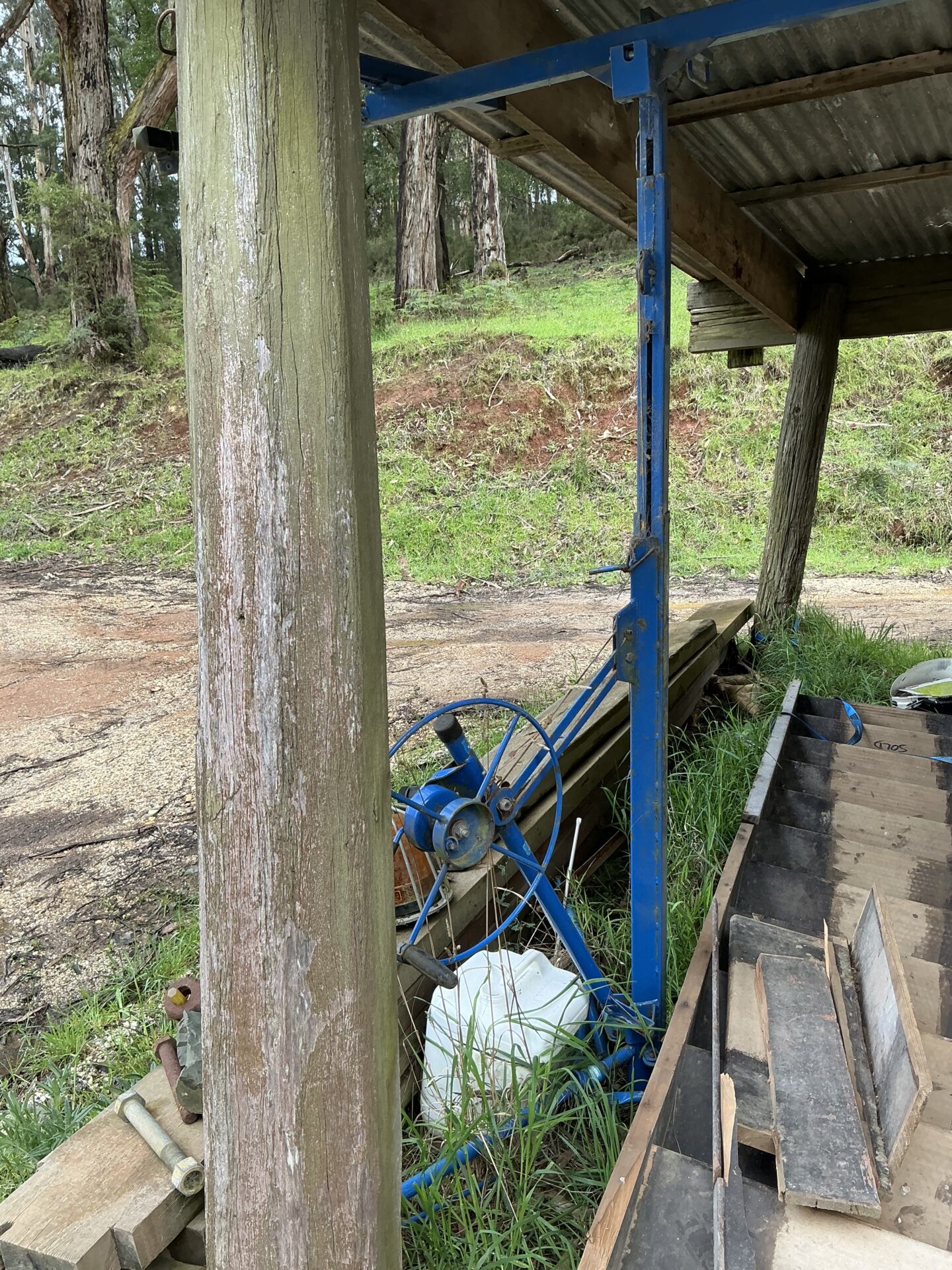 Sundry items: *Plastic sheet Gyprock lifter. *Oregon beams, 4x 4.8mx300x80. *1x 2.7mx300x80. * Qnty Red Gum natural tree aged. Qnty of new starter motors to suit early Holden & Fords. *Lucas Mill with petrol engine. *20ft shipping container. *4x 14.5m concrete power poles. *15x 13.5m concrete power poles. *2x 1.5tn demolition balls.