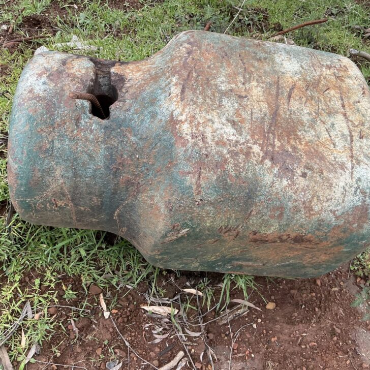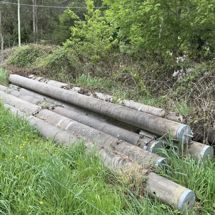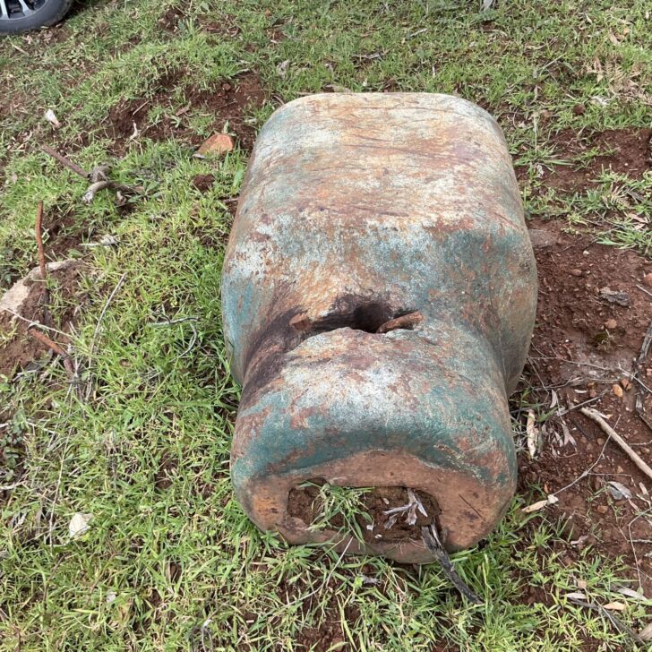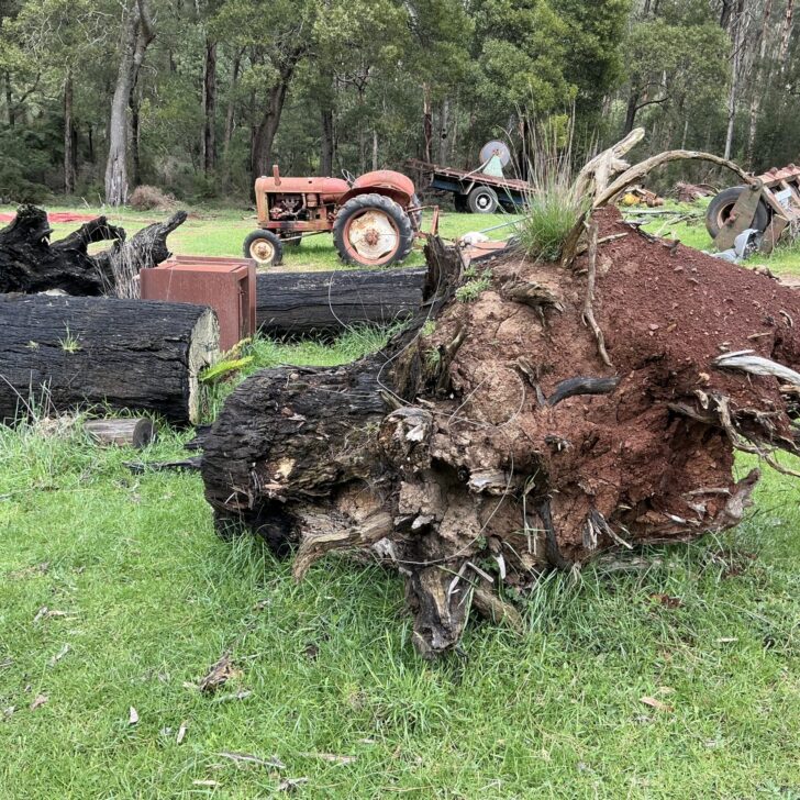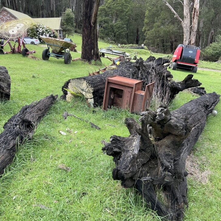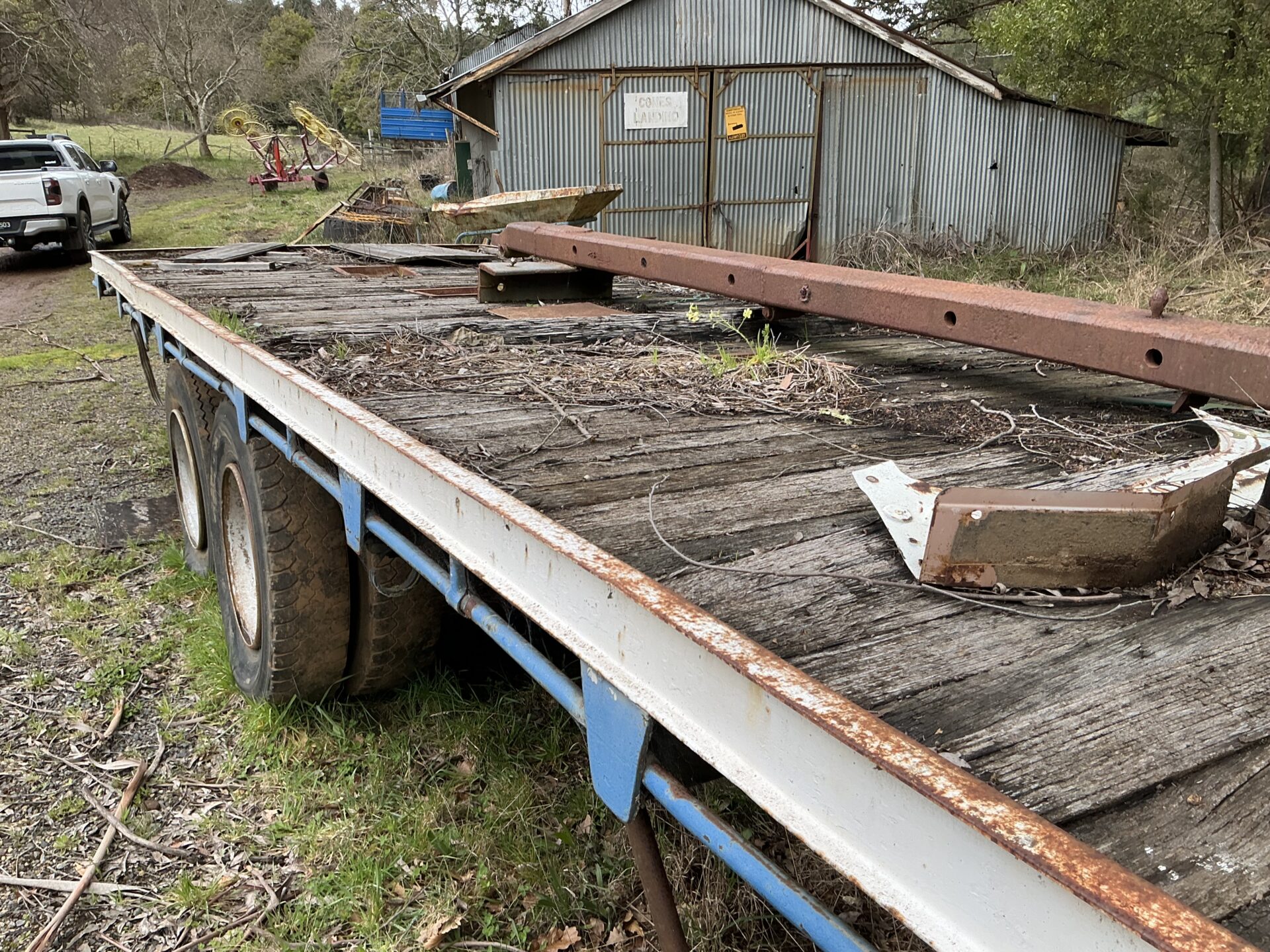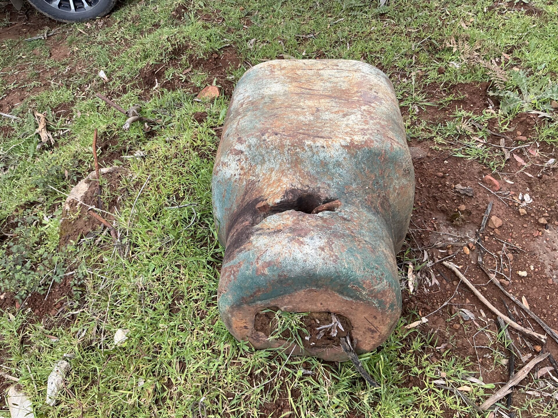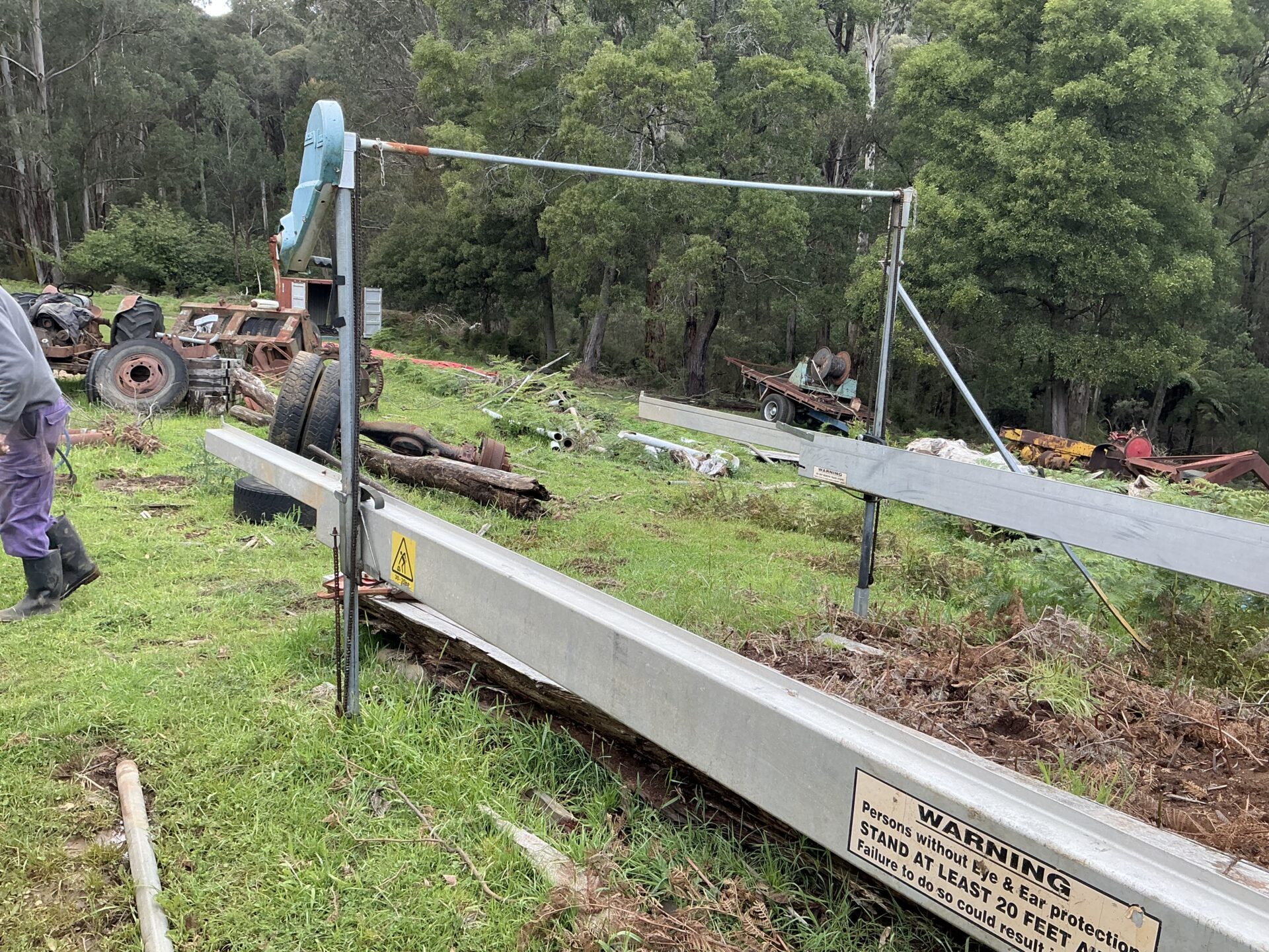 Sundry items: *Plastic sheet Gyprock lifter. *Oregon beams, 4x 4.8mx300x80. *1x 2.7mx300x80. * Qnty Red Gum natural tree aged. Qnty of new starter motors to suit early Holden & Fords. *Lucas Mill with petrol engine. *20ft shipping container. *4x 14.5m concrete power poles. *15x 13.5m concrete power poles. *2x 1.5tn demolition balls.