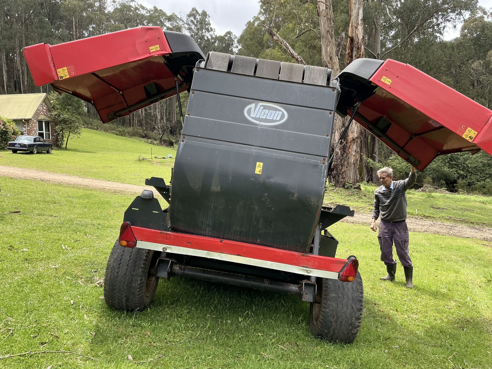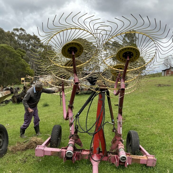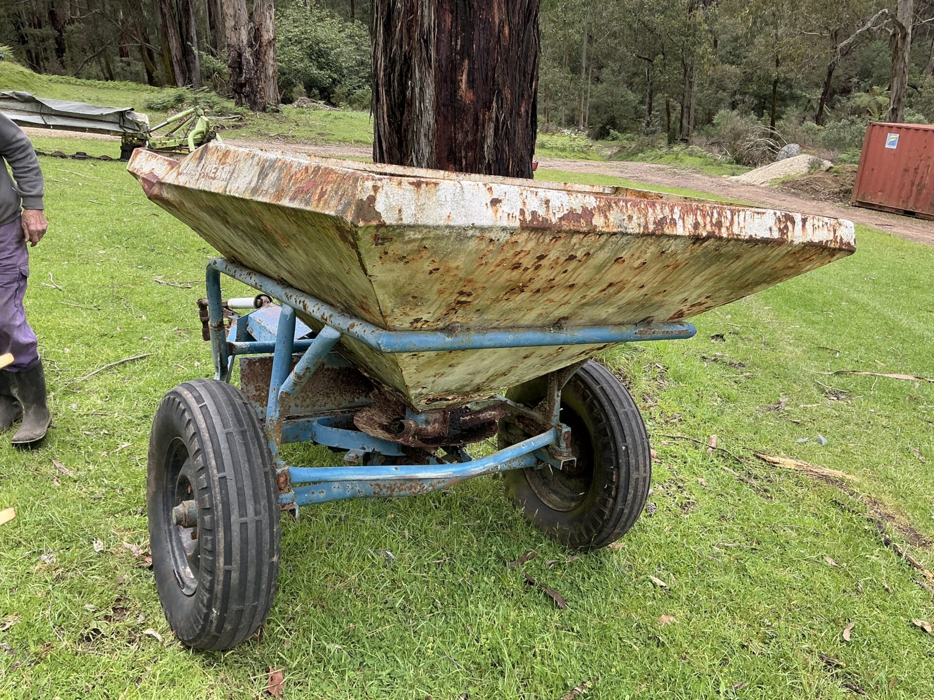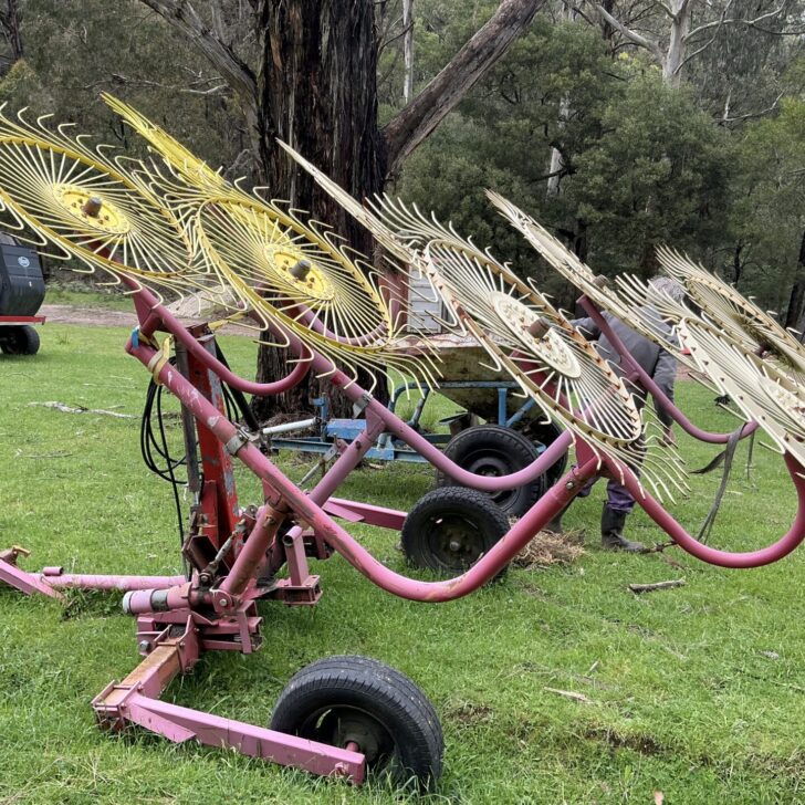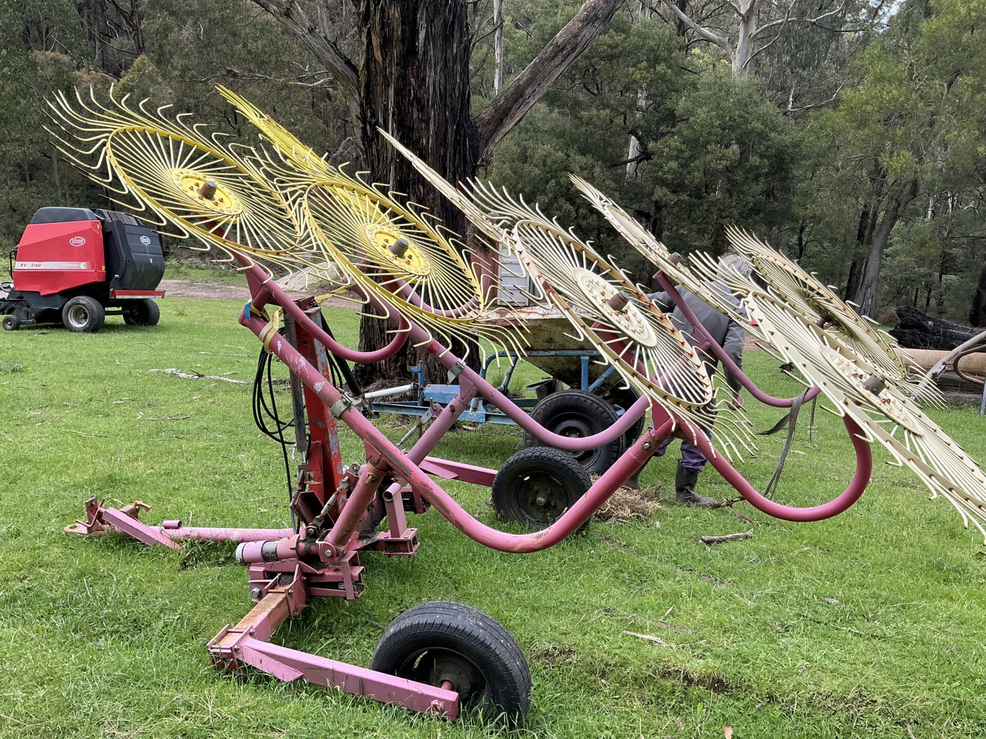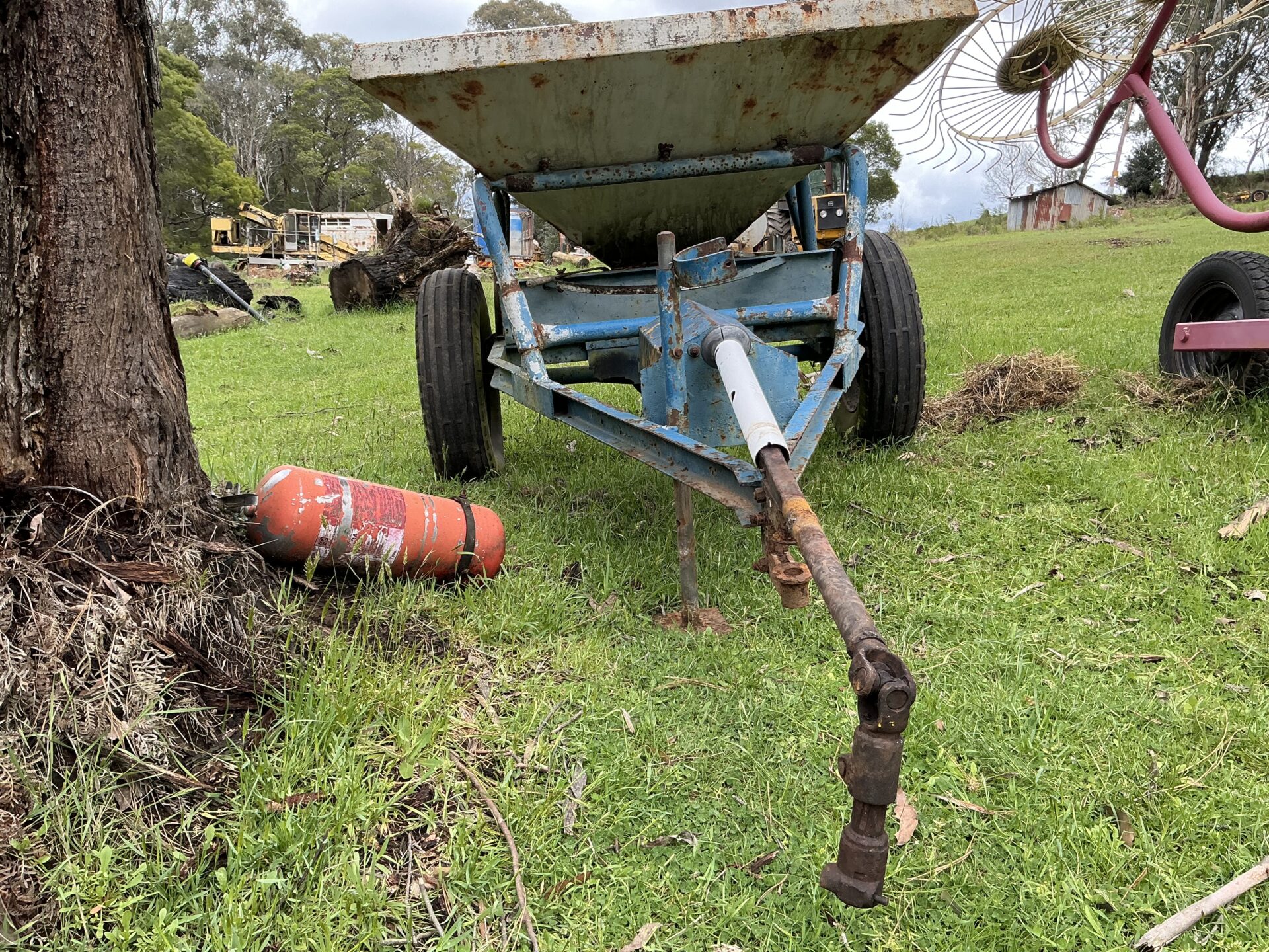 Hay & Spreaders: *Vicon RV2160 baler, 26000bales, rotary feed. *Claas 12ft mower, reconditioned. *2tn Super spreader. *Silvan 8 Wheel Hay rake. *Vintage chicken manure spreader. *Single axle 4-ton trailer.
