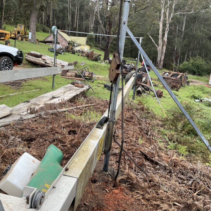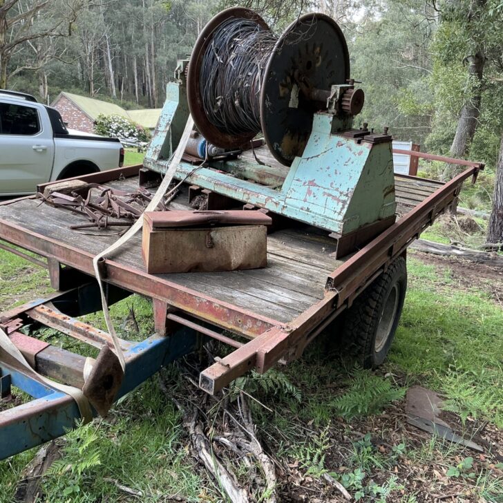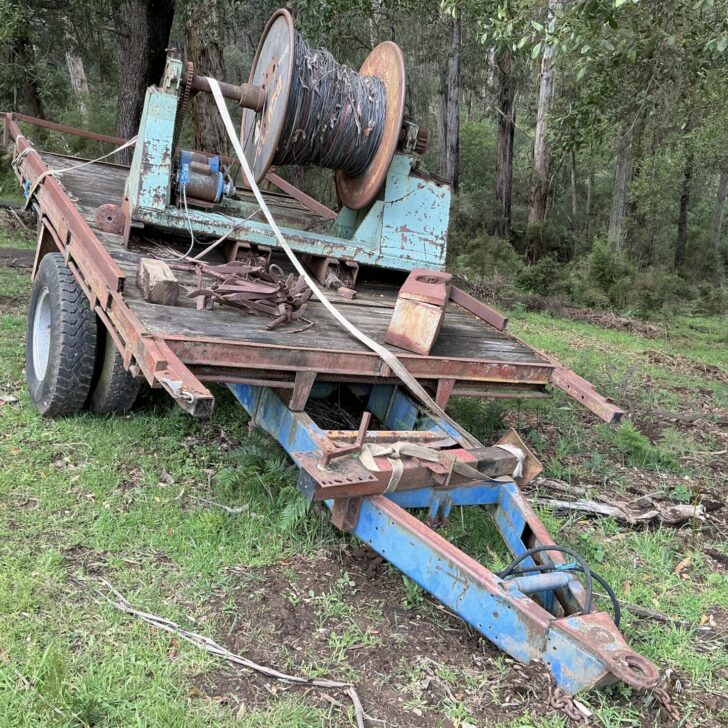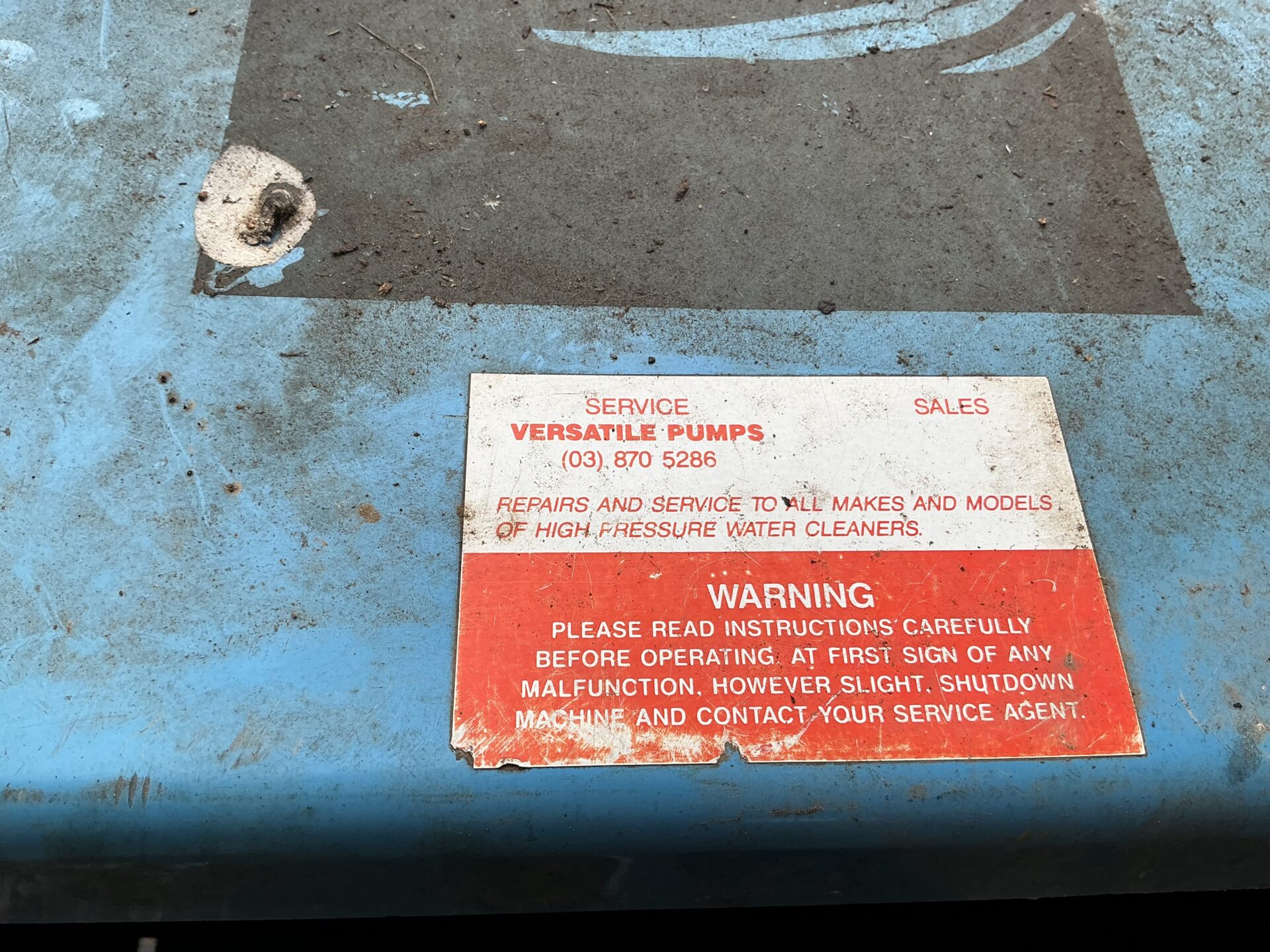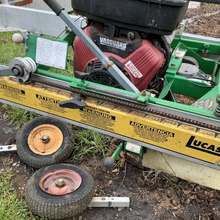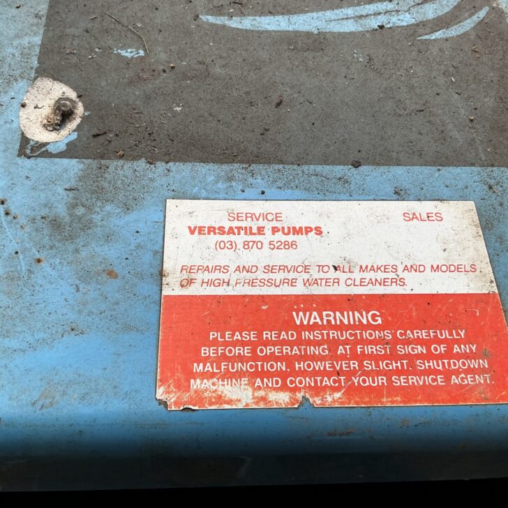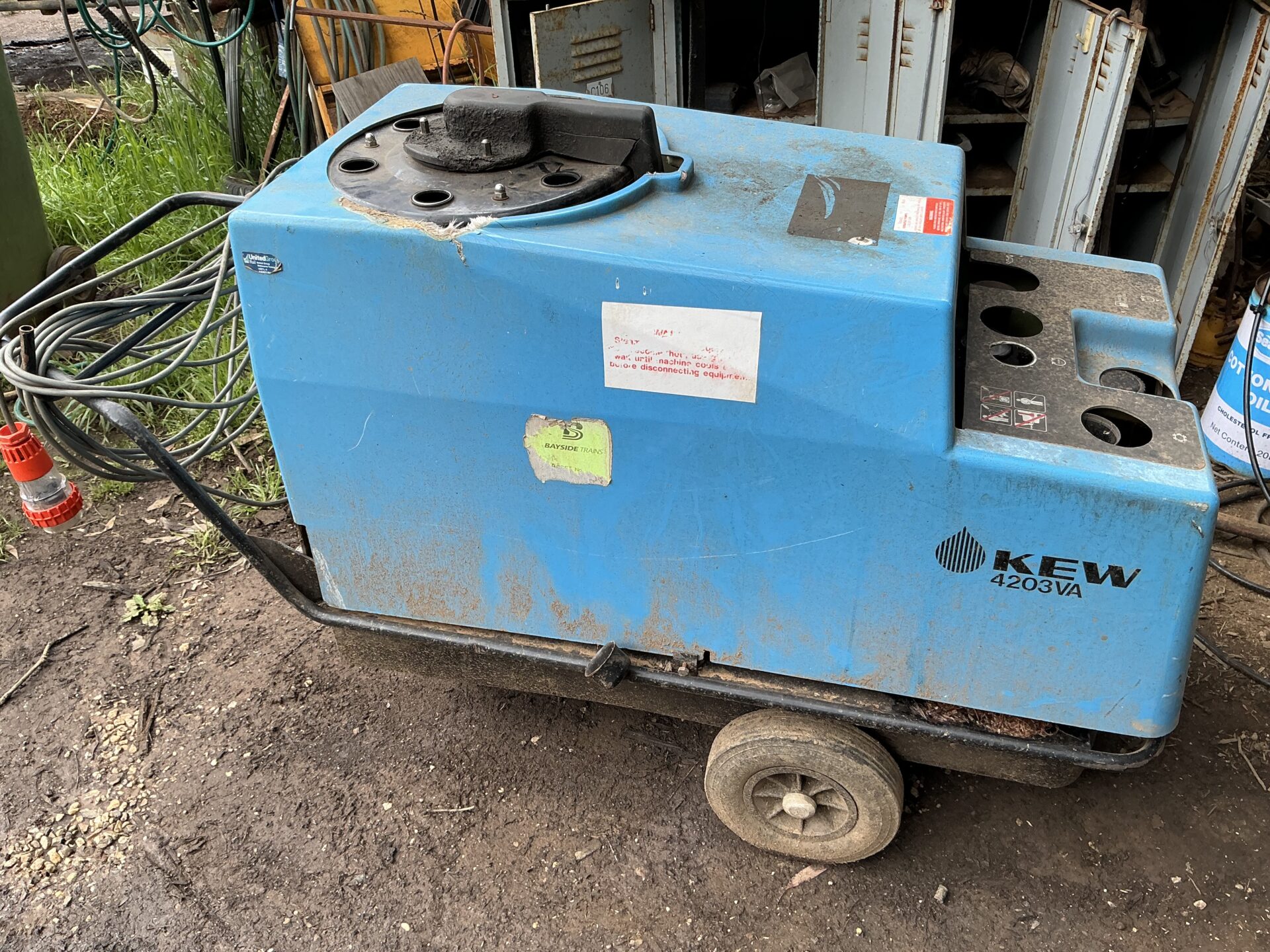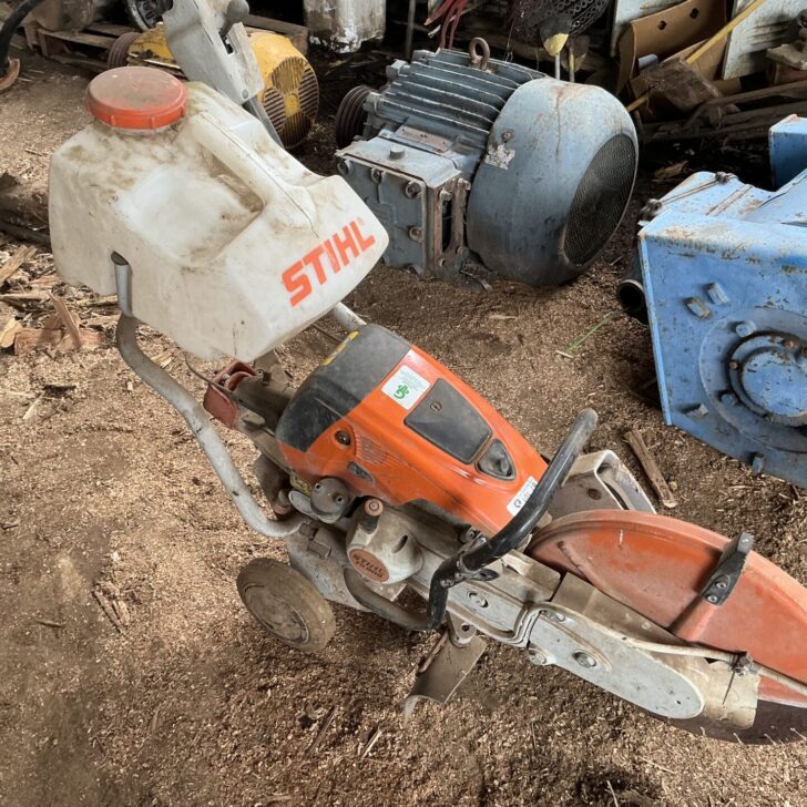Equip: *Freshca 12” post hole Auger. *Stihl TS 800 petrol concrete cutter. *Kew 4203VA Hot/cold water electric pressure cleaner. *WEG 3 phase electric motor working. *Crompton Greaves 3 phase electric motor working. * Electric 3 phase motor working. *Robin FY40D generator. *H/D electric cable winder. *Roston Hornsby 35RB drag bucket.