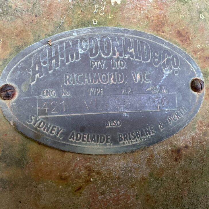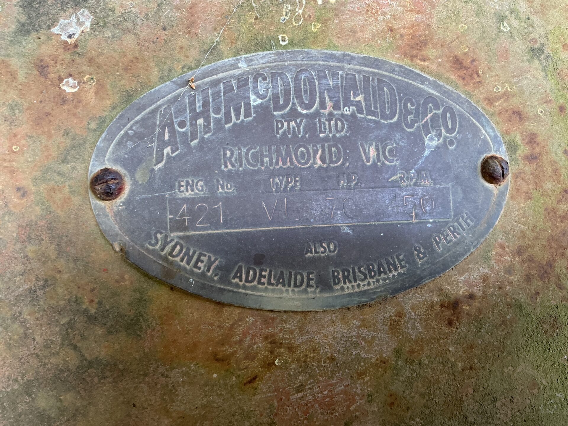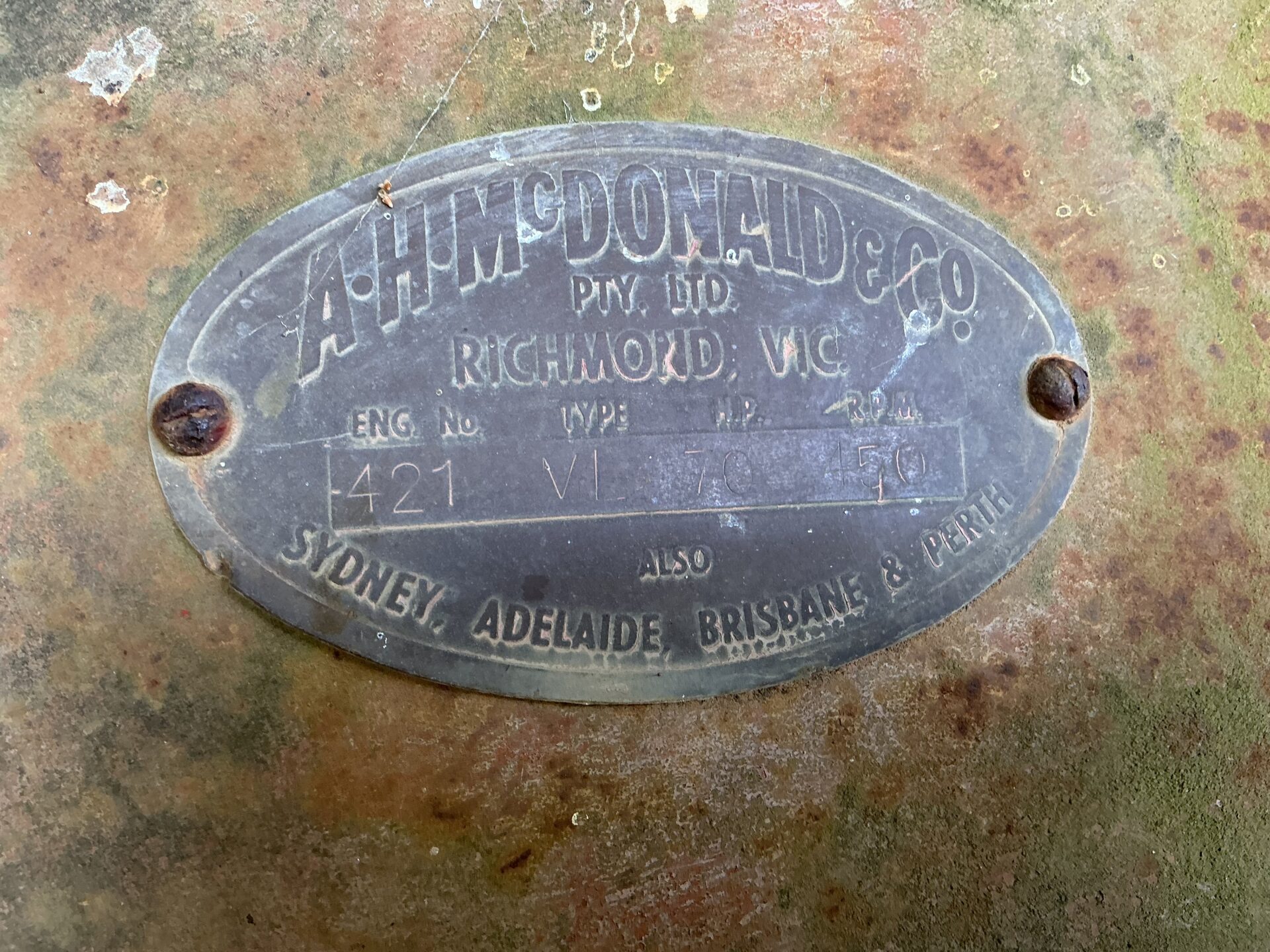 Vintage Engine: *Fuller & Johnson 1923 Stationery engine (incomplete). *A.H McDonald Imperial Super diesel stationery engine.